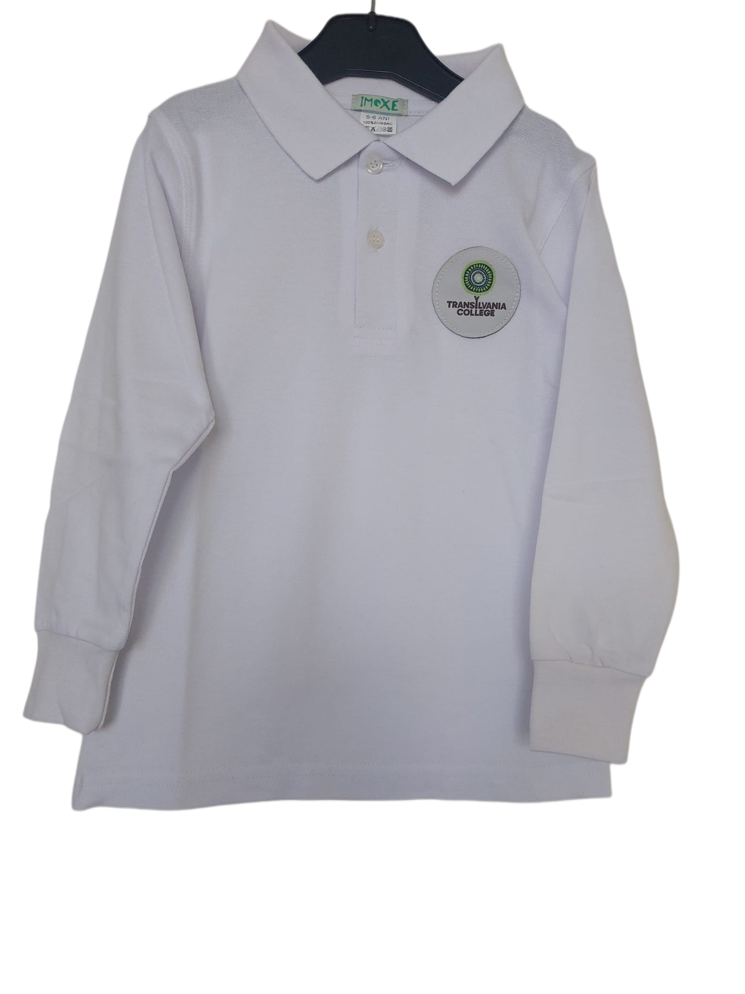 White T-shirt with collar- long sleeves – PRIMARY – Transylvania College